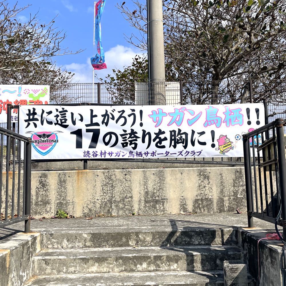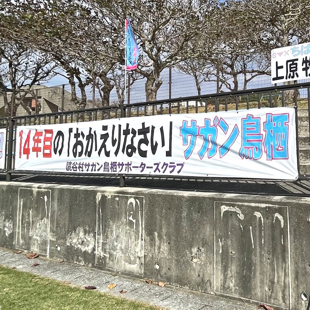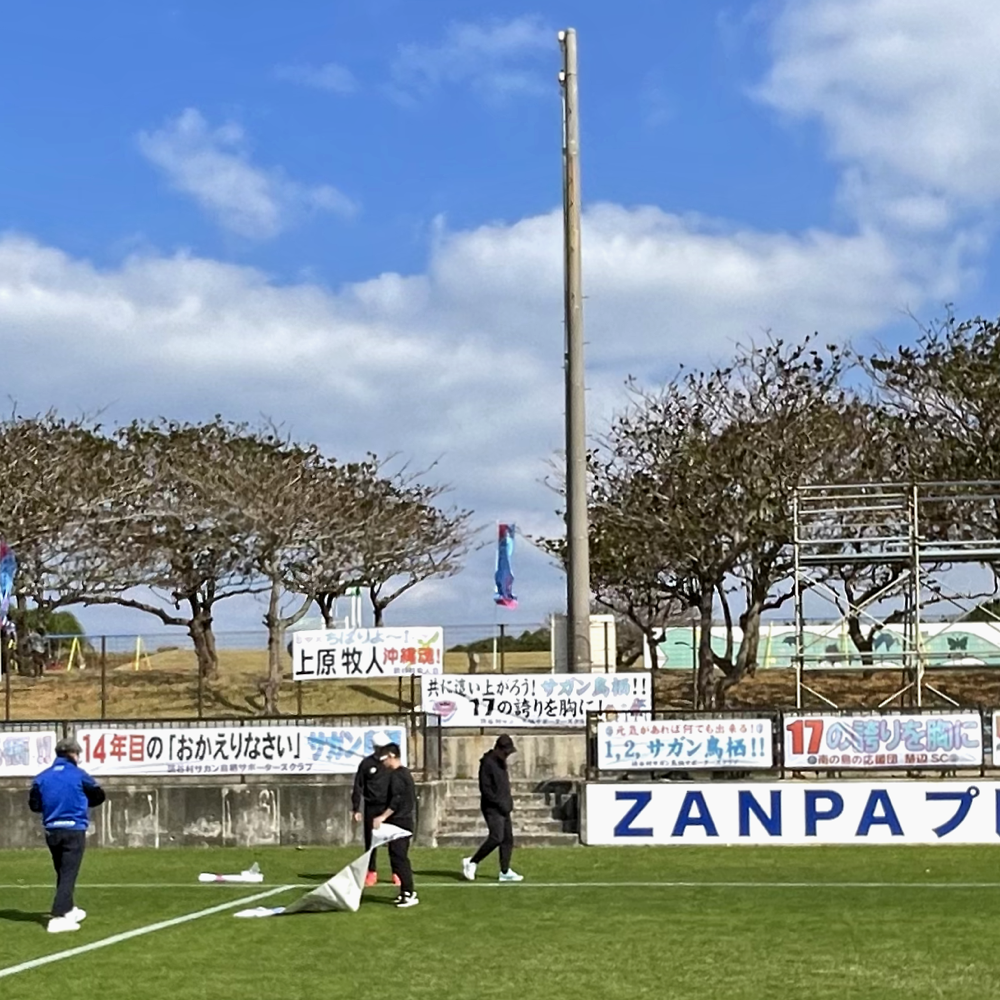 で、なんでボールパークに行ったのかっていいますと…今年も1月7日(水)からサガン鳥栖のトレーニングキャンプが行われるということで、サポーターズクラブのメンバーと応援横断幕を張るためでしたー。