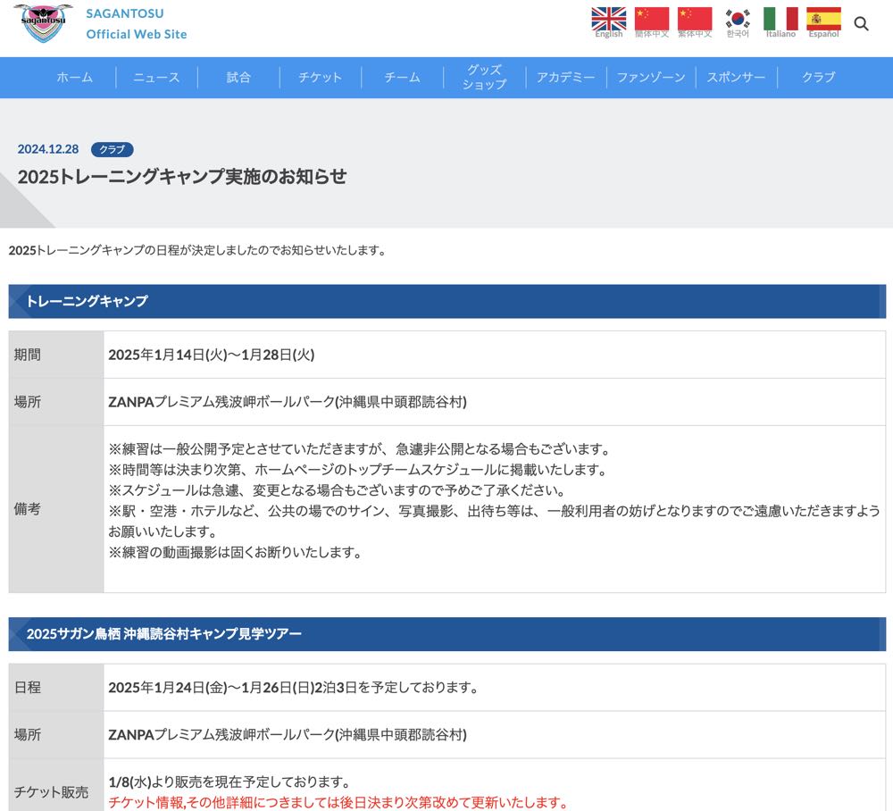◆ サガン鳥栖 2026トレーニングキャンプ