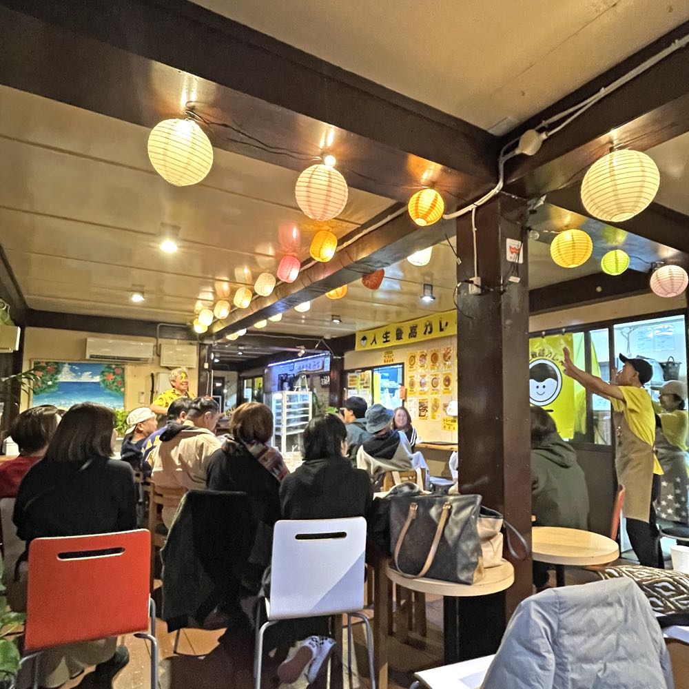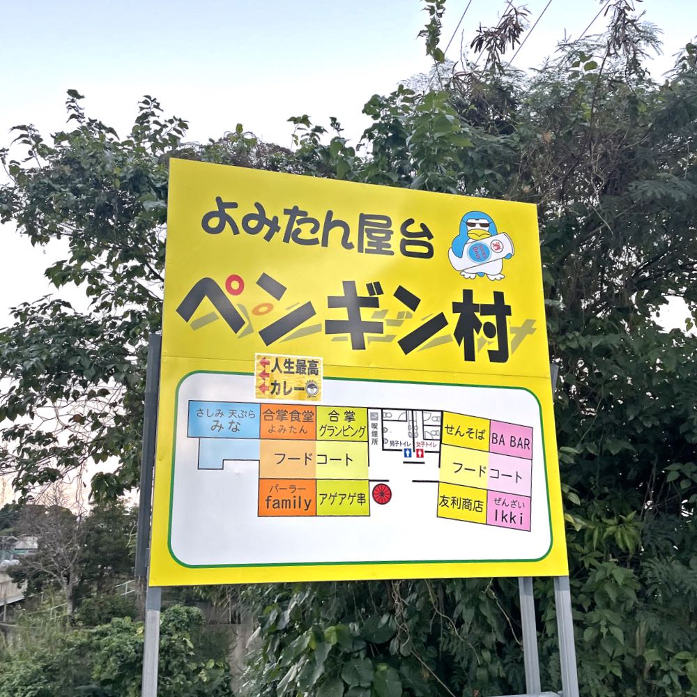 会場は、読谷村比謝地内にある、いろんな飲食店が入居するフードコート的な、その名も、読谷屋台ペンギン村(!)